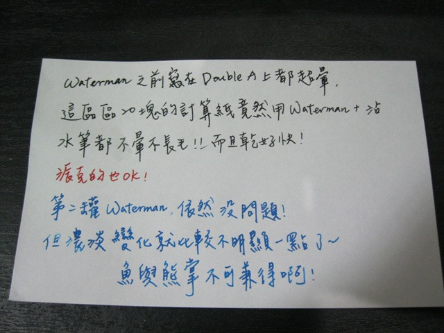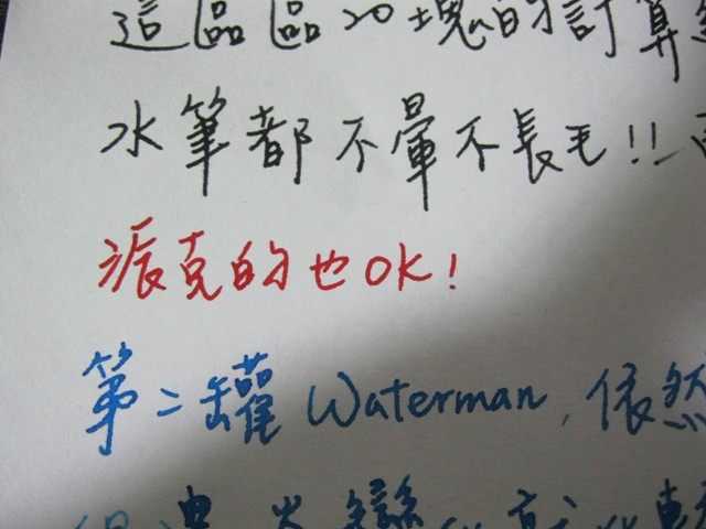 試寫用的是Waterman跟派克的墨水(感謝室友貢獻她的筆跡~~)